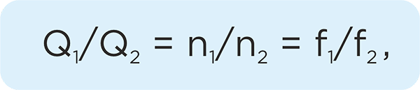 Основные параметры системы, в которой работает насос – расход Q и напор H. Расход – это объем жидкости, которую насос перекачивает за единицу времени. Измеряется в кубических метрах в час (м³/ч). Он пропорционален скорости вращения вала насоса, ведь чем быстрее вращается крыльчатка, тем больше жидкости проходит по трубе, и расход становится выше: