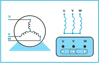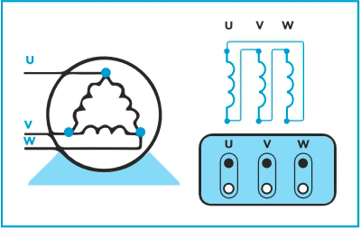 - «треугольник»: конец обмотки одной из фаз соединяется с началом последующей.