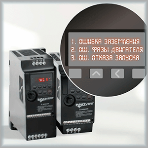 При кратковременном отклонении преобразователь самостоятельно справляется с проблемой, отключая двигатель, а затем включая его заново. При длительном же отклонении от нормативного показателя происходит отключение всей технологической линии или системы, а также может фиксироваться выход из строя двигателя или частотника. На дисплее при перегрузке по току появляется ошибка OC (в ПЧ таких брендов как INNOVERT, Delta) или Err 02, 03, 04 (например, в преобразователях частоты INSTART или OPTIMUS).