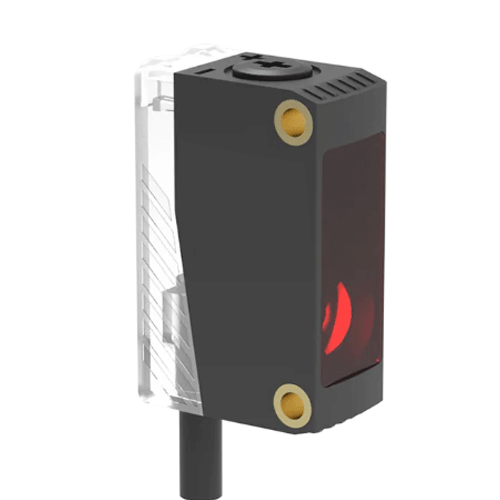 Лазерные датчики ELE-B35P используют сфокусированный световой луч для обнаружения присутствия/отсутствия или расстояния до объекта.