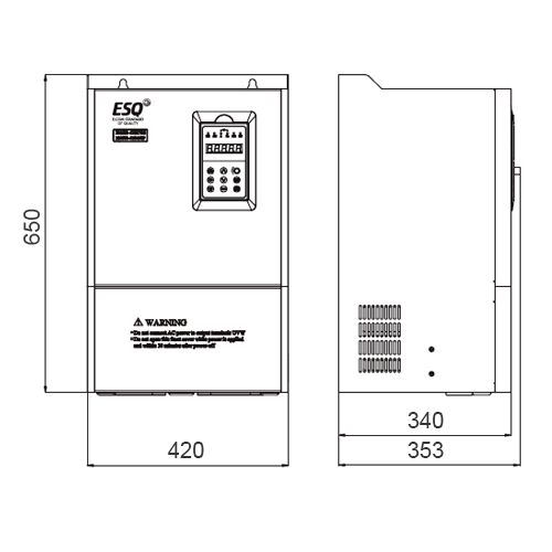 Преобразователь частоты ESQ 500, рассчитанный на входное напряжение 380 В, обеспечивает управление электродвигателями мощностью до 132 кВт при нагрузке с постоянным моментом и до 160 кВт при нагрузке с переменным моментом.