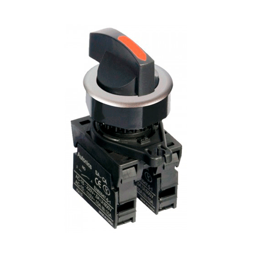Кнопка селекторная, длинная рукоятка - 3 положения с фиксацией, 30 мм, 2A (2 NO), красный