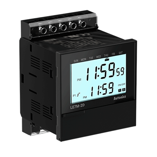 Для управления сложными производственными циклами отлично подходит таймер LE7M-2D. Его отличительная особенность — возможность программирования до 64 шагов еженедельно и 32 — ежегодно. Это высококачественное устройство легко встраивается в действующие системы автоматизации за счет поддержки нескольких рабочих режимов, включая функцию установки времени.