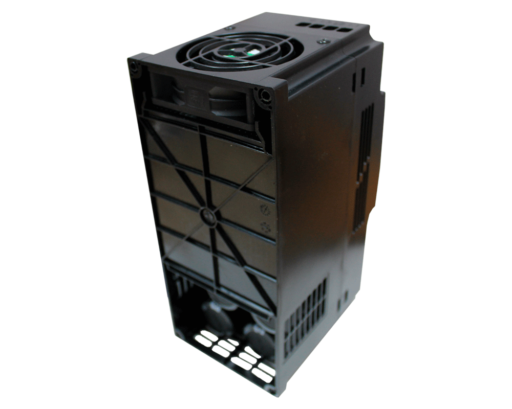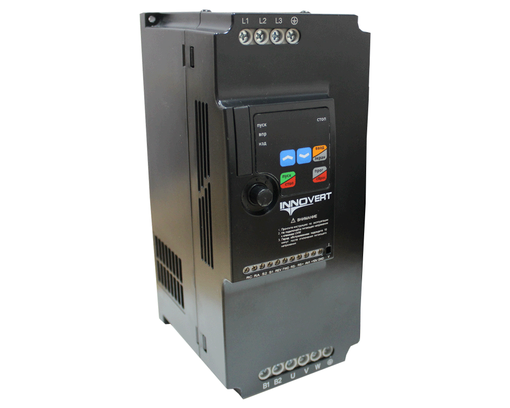Реализованы функции PID и IPD регулирования, включая управление расходом по задаваемой кривой. Регулирование скорости — по кривым разгона и торможения (до 3600 сек). Управление — с лицевой панели (ручкой потенциометра) или через внешние сигналы и дискретных входа. Есть реверсирование, предустановленных частот, защита от перегрузки.