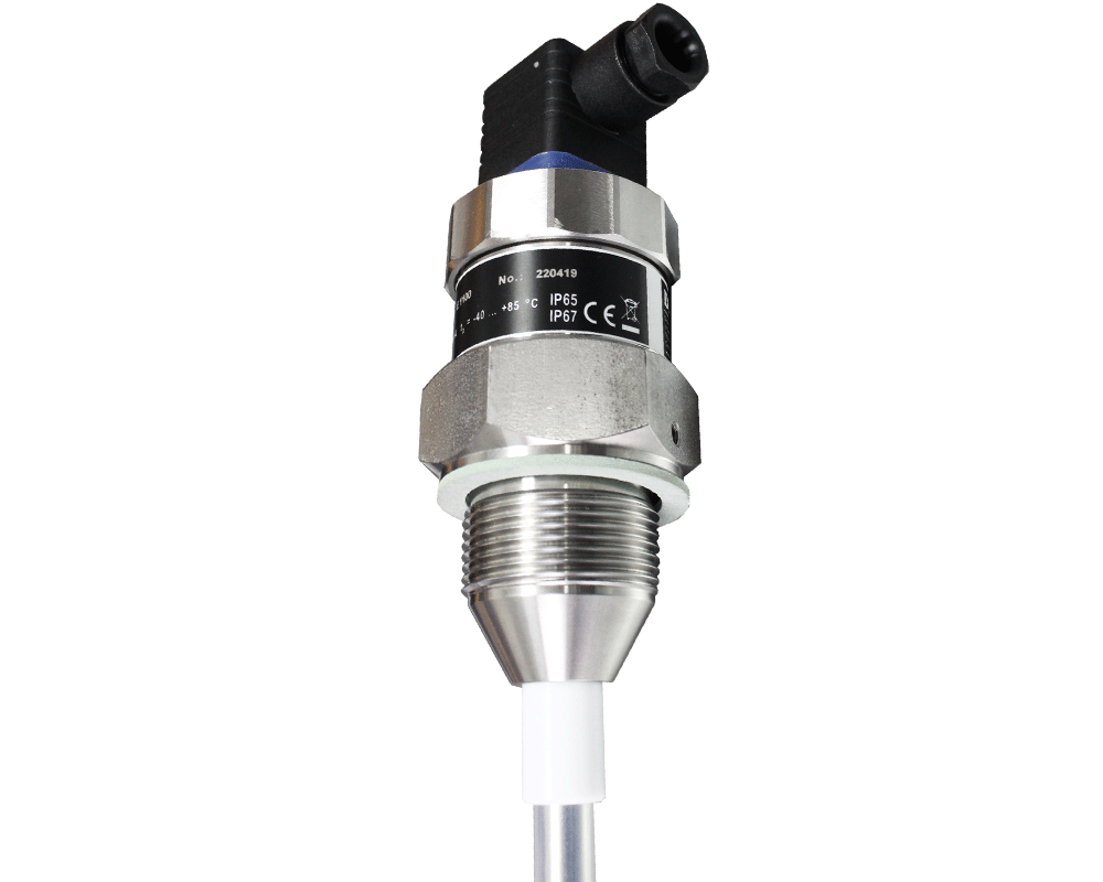 Емкостный датчик уровня CLM-36N-11-M-I-E1100 для контроля уровня жидкости и сыпучих материалов.Исполнение со стержневым электродом с ПФA-изоляцией.