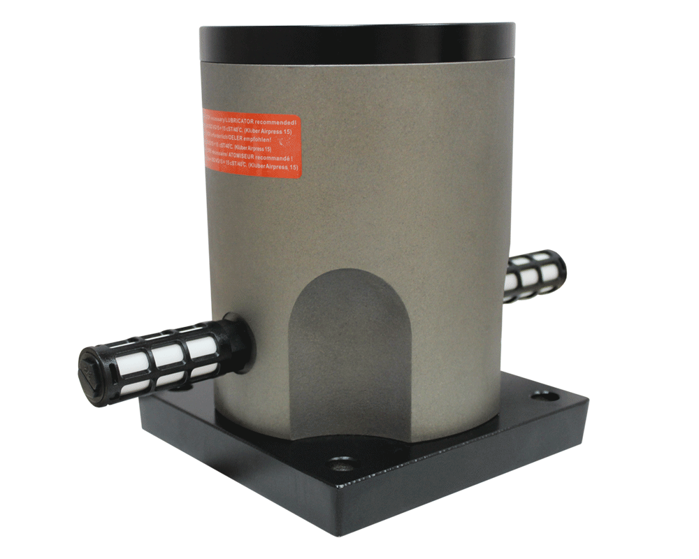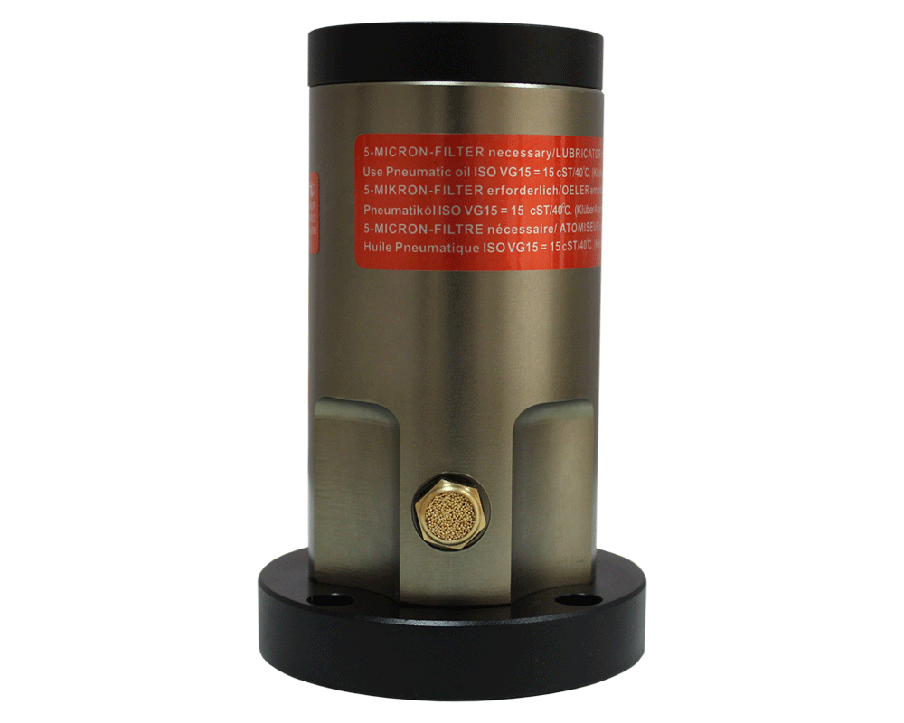 Вибрация создается за счет ритмичного движения поршня в корпусе. Рабочей средой для создания усилия на возвратно-поступательное движение служит сжатый воздух, подаваемый с давлением в 2 бар через управляющие клапаны.