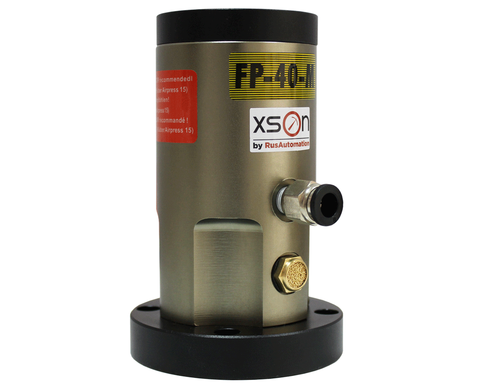 Поршневой пневмовибратор XSON-FP-40-M используют как источник управляемых по частоте колебаний в системах хранения и транспортировки сыпучих продуктов для удаления отложений.