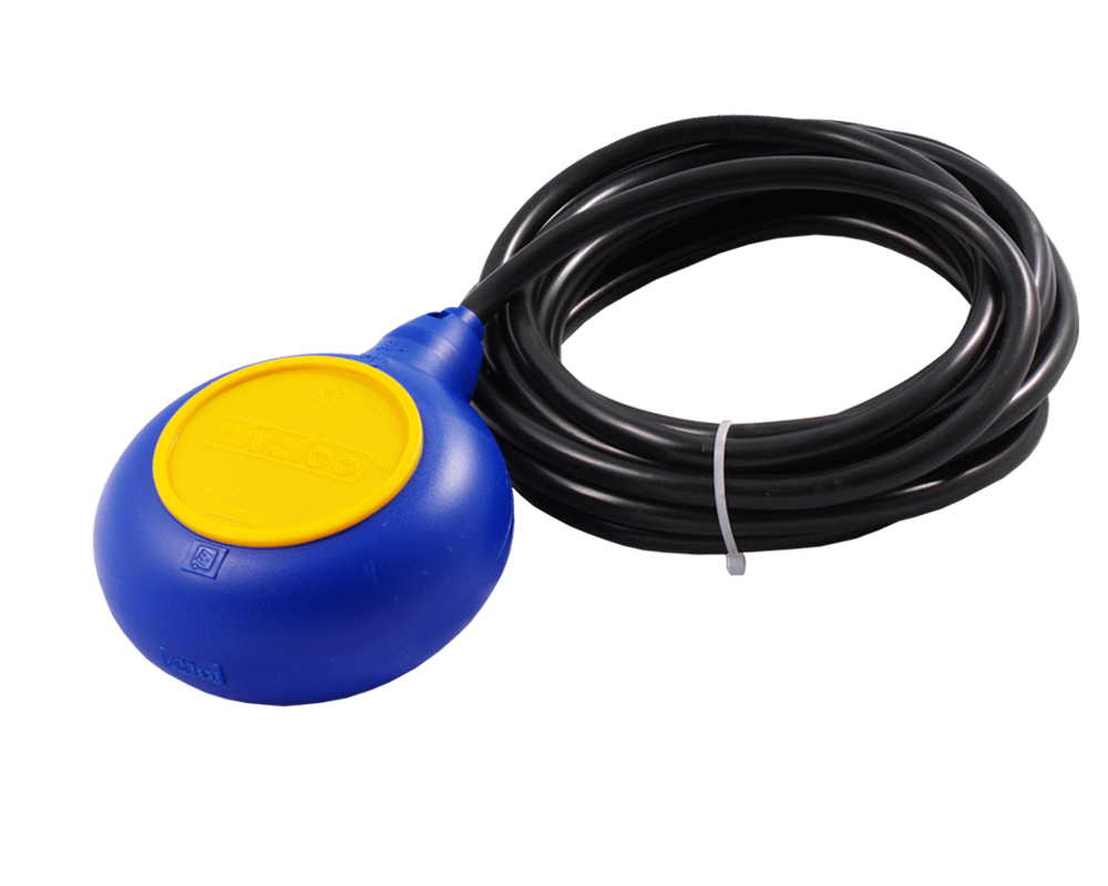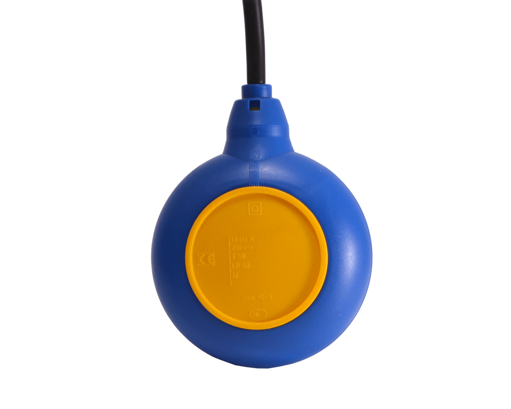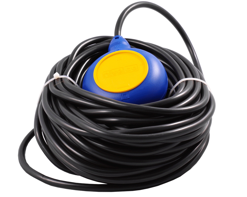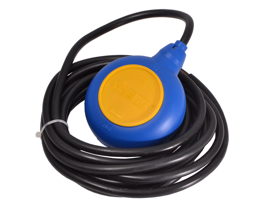 Поплавковый сигнализатор уровня способен напрямую управлять насосом наполнения/откачки. Коммутационная способность датчика уровня воды 16 Ампер 250 Вольт. Присоединение датчика выполняется кабелем длиной 5/10/20 метров, герметично заведенным внутрь датчика уровня воды. Кабель-датчик с сечением жил 1 мм2 может на ваш выбор иметь оболочку из ПВХ или Неопрена.