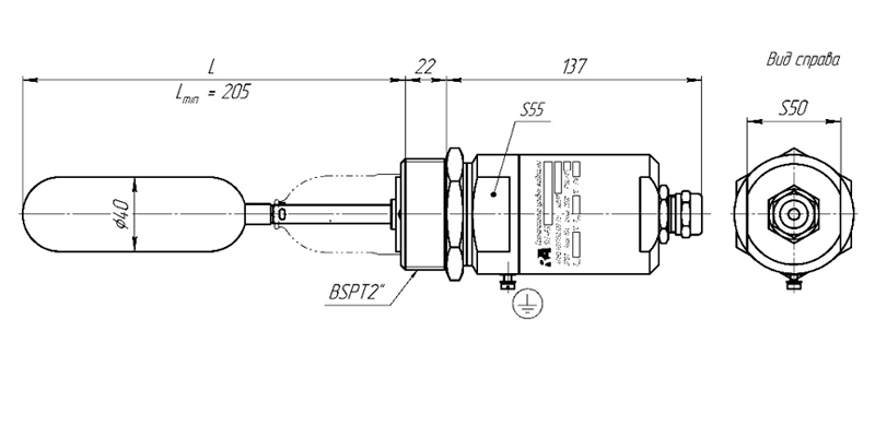 Сигнализатор уровня жидкости SLL-FS, исполнение общепромышленное с колпачком, корпус из нерж. стали IP66/IP67, присоед. к процессу: резьбовой штуцер BSPT2", PN16 бар, Tраб = -40…+150 град.С, Токр = -25…+85 град.С, реле SPDT, макс. коммутац. ток AC 10А / 250В; DC 0,2…10А / 250…8В, прямой рычаг стандартной длины, поплавок 40 мм AISI316, MIN плотность рабоч. жидкости 900 кг/м3, кабельный ввод 1хМ20х1,5 из никелир. латуни для небронир. кабеля 6...12 мм
