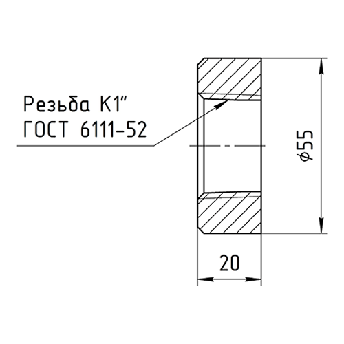 Втулка 1" NРТ под приварку, конич. резьба K1" (NPT1"), ф 55мм, L=20мм, ст.12Х18Н10Т, Pmax=10/3 МПа