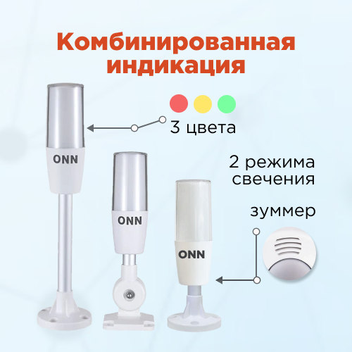 Колонна оснащена трехцветным световым модулем с красной, желтой и зеленой индикацией. Светодиоды размещены в двойном матовом плафоне, благодаря чему свет распределяется равномерно и остается хорошо заметным даже при ярком освещении производственных помещений. Поддерживаются режимы непрерывного и мигающего свечения. Дополнительно устройство оборудовано встроенным звуковым сигнализатором, который может работать в постоянном или прерывистом режиме. Громкость звукового оповещения достигает примерно 85 дБ.