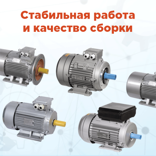 Двигатели комплектуются шарикоподшипниками ведущих производителей, что обеспечивает надежность и длительный срок службы оборудования.